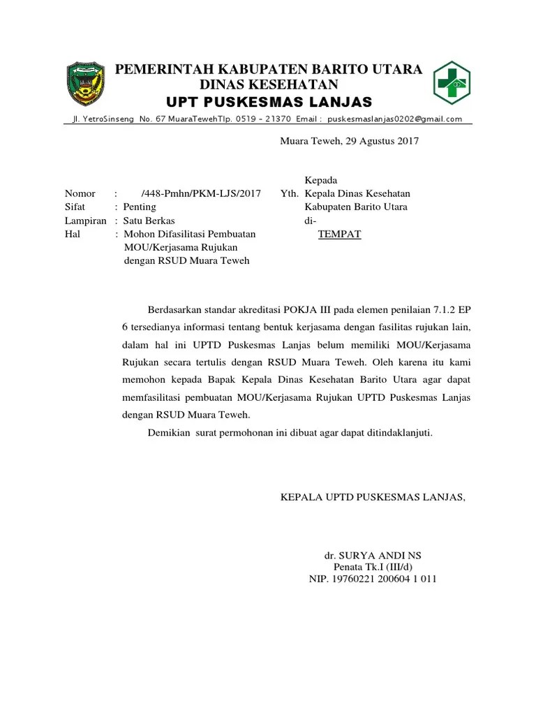 Surat perjanjian kerjasama / mou dengan puskesmas. Surat kerjasama dengan puskesmas kecamatan setempat;; Surat kerjasama mou sekolah dengan puskesmas tahun 2018 halo uupendidikan pada postingan ini saya akan berbagia contoh surat perjanjian . Itulah sobat informasi tentang contoh surat perjanjian kerjasama pelayanan kesehatan antara . Mengenai segala hal yang belum diketahui atau belum diatur dalam mou ini , makan akan diberikan dalam bentuk addendum yang tidak terpisahkan .
